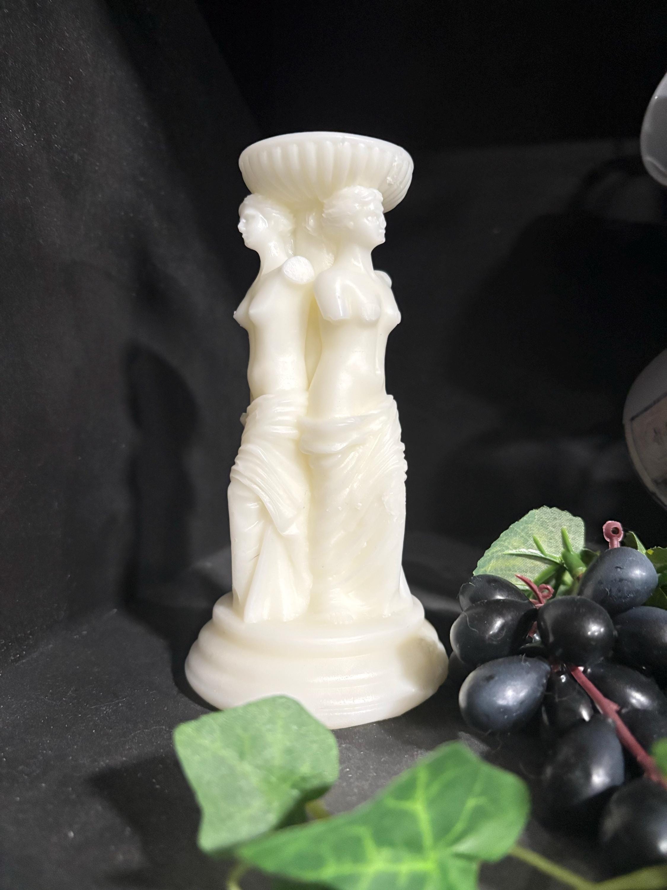 Illuminate your space with timeless elegance using our Greek-inspired pillar candle featuring a stunning statue of a woman sculpted on three sides. This unique candle combines classical beauty with modern design, showcasing intricate details of Greek artistry from every angle. Whether as a decorative accent or a conversation piece, our pillar candle adds a touch of sophistication to any room, inviting you to appreciate the enduring allure of ancient Greek culture.